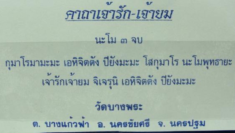 | รายละเอียด | รัก-ยม ขนาดจัมโบ้ หลวงพ่อเปิ่น ปี 44 ความสูง 3 นิ้ว รักยมดีทางเมตตามหานิยมแคล้วคลาด รักยมเป็นเครื่องรางของขลังอีกชนิดหนึ่งที่ประชาชนชาวไทยและประเทศเพื่อนบ้านนิยมกันมาตั้งแต่สมัยปู่ย่าตายาย โดยเฉพาะในหมู่พ่อค้าแม่ค้า และคนที่ทำงานกลางคืน แม้กระทั่งนักนิยมพระก็ยังแสวงหากัน เพราะเป็นเครื่องรางของขลังจากวิชาไสยศาสตร์อีกชนิดหนึ่งเล่นกันจนถึงทุกวันนี้ รักยมเกิดขึ้นมาตั้งแต่สมัยใดไม่ปรากฏในฐานะที่เราเป็นประชาชนชาวไทยคนหนึ่งที่นิยมเครื่องรางของขลังเคยพบเคยเห็นกันเป็นประจำส่วนมากเท่าที่ผู้เขียนเคยพบเห็นอยู่บ่อยรักยมจะเกิดแถวสนามพระทั่ว ๆ ไป แต่ที่แน่แถวท่าพระจันทร์และวัดราชนัดดาเองนี่เอง ถ้าผู้อ่านลองแวะเข้าไปในสนามพระก็จะเห็นรักยมนอนอยู่ในขวด เล็ก ๆ เรียงรายเป็นร้อย ๆ เป็นพันส่วนมากเจ้าของแผงจะนั่งหลาวตกแต่งเองขายเอง ทำความร่ำรวยอย่างมหาศาลมา แล้วหลายราย ลักษณะของรักยมคล้ายกุมารเล็ก ๆ ยืนพนมมือยกถึงคาง มีด้วยกัน 2 ร่าง อยู่ในขวดแช่น้ำมันจันทร์ที่หอมกรุ่นอยู่ตลอดเวลาชอบทองหยิบ – ทองหยอดผลไม้และของเล่นเด็กพร้อมด้วยน้ำหนึ่งแก้ว อานิสงฆ์ก่อนผู้ที่จะนำไปใช้จะนำไปให้กับคณาจารย์ที่มีชื่อเสียงหรือหมอที่เล่นเครื่องรางของขลังนำไปปลุกเสกเสียก่อนแล้วจึงนำไปใช้การนำ ไปใช้นั้นก็ต้องใช้ในทางที่ถูกบางท่านได้นำไปบูชา แล้วร่ำรวยมหาศาลมาแล้วก็มีในด้านอภินิหาร ประสบการณ์ก็เคยเกิดขึ้นกับผู้เลี้ยงมาแล้วมากมาย |