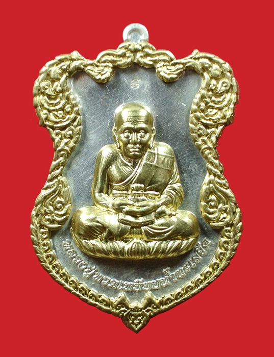 เหรียญโล่ห์ใหญ่ ทองแดงกะไหล่เงิน ฉลุประกบซุ้ม หน้ากากทอง หลวงปู่ทวด ญสส. ปี 2536 สมเด็จพระญาณสังวร