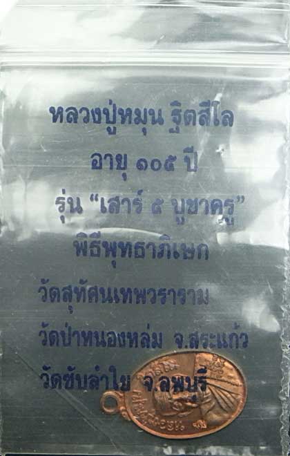 เหรียญเม็ดแตง หลวงปู่หมุน ฐิตสีโล เนี้อทองแดง ปี 43 เสาร์๕บูชาครู พร้อมซองเดิม