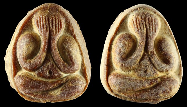 ทีเดียว 2 องค์ เนื้อผงเกสรอมเหลือง เนื้อโคตรจัด เข้มข้น นิ้วเด้งๆ ปิดตามหาเสน่หลังยันต์พุทโธ ฿26-4