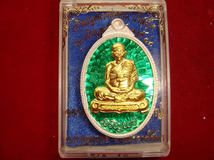 เหรียญหลวงพ่อคูณรุ่นเจริญพร89นั่งเต็มองค์ออกวัดถนนหักใหญ่ปี55เนื้อเงินลงยาสีเขียวหน้าทองคำ.18 - webpra