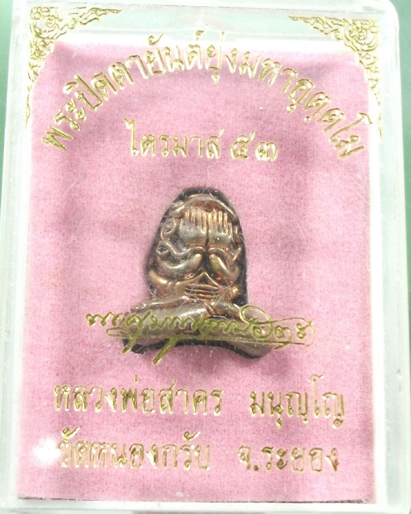 พระปิดตาอุตโมหลวงพ่อสาคร วดหนองกรบ จ.ระยอง เนื้อชนวน พิมพ์กลางกล่องเิดิม**เคาะเดียว**