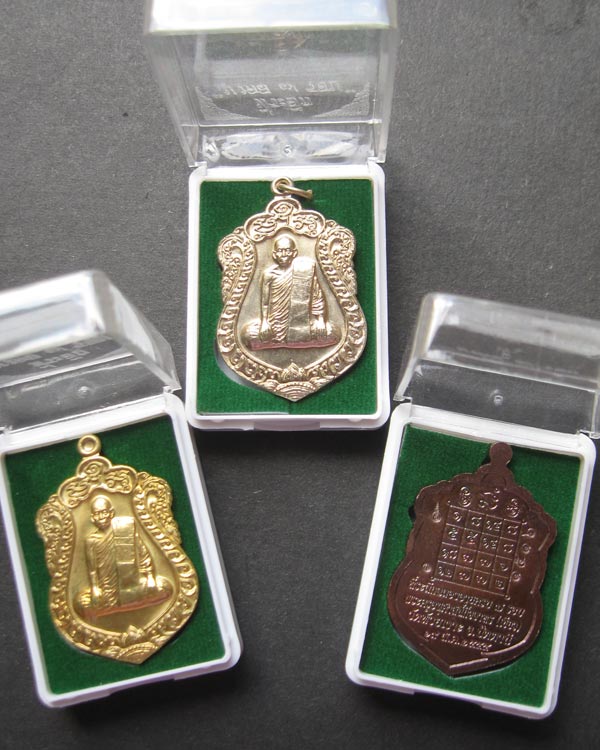 | ชื่อพระเครื่อง | เสมา7รอบ ท่านพ่อเขียว วัดห้วยเงาะ เนื้อทองแดงมันปู ทองฝาบาตร อัลปาก้า รวม3เหรียญ |