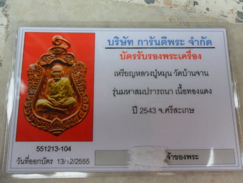 | รายละเอียด | เหรียญเสมา หลวงปู่หมุน ฐิตสีโล ๑๐๖ ปี (พ.ศ. ๒๕๔๓) รุ่น “ มหาสมปรารถนา” เพื่อสมทบทุนสร้าง ศาลาเทิดพระเกียรติฯ วัดซับลำไยสามัคคีธรรม ต.ซับจำปา อ.ท่าหลวง จ.ลพบุรี พิธีพุทธาภิเษกอย่างเข้มขลัง ถึง ๒ วาระ ครั้งที่ ๑ ณ วัดซับลำใยสามัคคีธรรม ต.ซับจำปา อ.ท่าหลวง จ.ลพบุรี เมื่อ ๕ พ.ย. ๒๕๔๓ ครั้งที่ ๒ ณ วัดระฆังโฆษิตาราม เมื่อ ๑๐ ธ.ค. ๒๕๔๓ พระอาจารย์ สมุห์ภาสน์ มงคลสงโฆ ศิษย์เอกของหลวงพ่อกวย ชุตินธโร ผู้บุกเบิกสร้าง วัดซับลำไย จนมีที่ดินของวัดเกือบร้อยไร่ สร้างวิหารถวายหลวงพ่อกวย ผู้เป็นอาจารย์ จนใกล้เสร็จ และได้ฝากตัวเป็นศิษย์ของหลวงปู่หมุน ฐิตสีโล จนได้รับความเมตตาจากหลวงปู่หมุนหลาย ๆ อย่าง และด้วยความกตัญญูในครูบาอาจารย์ หลวงปู่หมุน ที่พระอาจารย์ให้ความเคารพมาก ในวันที่ 3 กันยายน 2543 ที่วัดซับลำใยจะได้ทำพิธีเททอง เบิกฤกษ์ สร้างรูปหล่อหลวงปู่หมุน เท่าองค์จริงขึ้น พร้อมสร้างพระกริ่ง วัตถุมงคลอื่น ๆ ในเอกลักษณ์ของหลวงปู่หมุน ตามที่หลวงปู่หมุน ท่านได้กล่าวกับพระอาจารย์สมุห์ภาสน์ ผู้เป็นศิษย์ก่อนสร้างวัตถุมงคลรุ่นมหาสมปรารถนาว่า…… “ นี่คุณสมุห์ภาสน์ ฉันจะอนุญาตให้คุณ ได้สร้างวัตถุมงคลของฉัน เพราะฉันเห็นแก่คุณสมุห์ฯ ที่สร้างวิหารเทิดพระเกียรติยังไม่เสร็จ อีกอย่างคุณสมุห์ฯ อยู่เบื้องหลังสร้างพระให้คนอื่นเขาสำเร็จมามากแล้ว ถึงตัวเองบ้างก็ยังไม่ทำอะไรขึ้น ” หลวงปู่หมุน กล่าวเมื่องานยกช่อฟ้า วิหารที่วัดซับลำใย ซึ่งในตอนนั้น พระอาจารย์สมุห์ภาสน์ ก็ได้กราบเรียนหลวงปู่หมุน ไปว่า “หลวงปู่ขอรับ กระผมไม่มีเงินทุนพอที่จะจัดสร้างวัตถุมงคลต่าง ๆ ตามที่หลวงปู่เมตตาแนะนำให้เลยขอรับ “มีซิฉันจะให้เธอสมปรารถนาทุกอย่างนั่นแหละ” (หลวงปู่หมุนกล่าวอย่างมั่นใจ) และนี่คือเป็นที่มาของการจัดสร้างวัตถุมงคลของหลวงปู่หมุน ฐิตสีโล พระผู้มีประกาศิตต่าง ๆ ในตัว ซึ่งวัตถุมงคลต่าง ๆ รายการและจำนวนสร้าง ๑.หล่อรูปเหมือนลอยองค์ เนื้อนวะโลหะ เทดินไทยโบราณ ๑,๐๐๐ องค์ ๒. เหรียญเสมา นั่งเต็มองค์ ๒.๑ เนื้อทองคำ ลงยา ตามสั่งจอง ๒.๒ เนื้อเงิน หน้าทองคำ หลังเงิน ฉลุลงยา ตามสั่งจอง ๒.๓ เนื้อเงิน หน้าเงิน หลังเงิน ฉลุลงยา ๓๐๐ เหรียญ ๒.๔ เนื้อนวโลหะหน้าทองคำ หลังนวโลหะฉลุลงยา ๓๐๐ เหรียญ ๒.๔ เนื้อนวโลหะหน้าเงิน หลังนวโลหะฉลุลงยา ๓๐๐ เหรียญ ๒.๕ เนื้อเงิน บัตรรับรองจากเวปจีครับ |