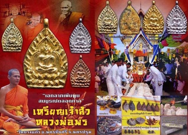 | รายละเอียด | เหรียญเจ้าสัว หลวงพ่อพร วัดบางแก้ว เนื้อทองแดง พร้อมกล่อง มีจาร ตอก 2 โค๊ต วันนี้ชื่อเสียงของ พระครูพิจิตรสรคุณ (พร ปภากโร) แห่งวัดบางแก้ว อ.นครชัยศรี จ.นครปฐม ดังกระหึ่มทั่วสารทิศ ในฐานะพระปฏิบัติดีปฏิบัติชอบและพุทธาคมแกร่งกล้าไม่เป็นรองใคร ปลุกเสกวัตถุมงคลทุกรุ่นล้วนศักดิ์สิทธิ์เข้มขลัง เป็นที่แสวงหาของผู้ศรัทธาและนักสะสมวัดบางแก้ว สันนิษฐานว่าสร้างแต่ครั้งกรุงศรีอยุธยาเป็นราชธานี กาลเวลาผ่านไปหลายร้อยปี ทำให้ชำรุดทรุดโทรมอุดมไปด้วยต้นไม้ใบหญ้ารกรุงรัง พระอุโบสถหลังเก่าทรุดเอียงและปูนแตกร้าวจนเห็นก้อนอิฐขนาดใหญ่ด้านใน เคยมีเจ้าอาวาสครองวัดมาหลายรูป เท่าที่สืบค้นประวัติได้มีดังนี้ หลวงปู่ศุข หลวงปู่กลิ่น หลวงพ่อพัฒน์ หลวงพ่อจอน หลวงพ่อจันทร์ หลวงพ่อเก่า และหลวงพ่อปุ่น และสุดท้ายคณะสงฆ์เห็นควรให้ พระครูพิจิตรสรคุณ (พร ปภากโร) มาดำรงตำแหน่งเจ้าอาวาสถึงปัจจุบันนี้ ว่ากันว่าวัดบางแก้ว มีอดีตพระเกจิ อาจารย์ยุคเก่าที่ผู้คนให้ความเคารพนับถืออยู่ ๒ รูป นั่นคือ หลวงปู่กลิ่น และหลวงพ่อพัฒน์ ต่างก็มีวิชาอาคมแก่กล้าเป็นที่เลื่องลือไปทั่ว แต่ข้อมูลและรายละเอียดต่าง ๆ หายาก จึงไม่ได้รับการเผยแพร่เท่าที่ควร มีเพียงรูปหล่อหลวงพ่อพัฒน์ประดิษฐานอยู่ในวัด และ “งาช้างดำ” ยาวข้างละ ๑ วา สีดำสนิทเหมือนนิล ที่ชาวบ้านนำมาถวาย พระครูศีลกัณตาภรณ์ หรือหลวงพ่อปุ่น กันตสีโร อดีตเจ้าอาวาสไว้ ซึ่งสร้างความเดือดร้อนใหญ่มาให้วัด เพราะคลื่นมหาชนต่างหลั่งไหลมาขอดู ขอชม บางรายอยากได้ไปครอบครอง จนต้องเก็บรักษากันสุดชีวิต ครั้นหลวงพ่อปุ่นมรณภาพปี พ.ศ. ๒๕๔๖ ทิ้งของล้ำค่า “งาช้างดำ” ไว้เคียงคู่วัด จนในปี พ.ศ. ๒๕๔๖ หลวงพ่อพร ย้ายจากวัดกลางบางแก้วมาเป็นเจ้าอาวาสวัดบางแก้ว ก็รักษางาช้างดำสืบต่อมา ประวัติของ พระครูพิจิตรสรคุณ หรือหลวงพ่อพร เกิดเมื่อวันที่ ๑๘ เม.ย. พ.ศ. ๒๕๐๖ ที่ ต.สระกระเทียม อ.เมือง จ.นครปฐม บิดาชื่อ หลำ มารดาชื่อ สะอิ้ง นามสกุล บัวคำ วัยเด็กเรียนหนังสือที่โรงเรียนสระกระเทียมวิทยาคมจบชั้นมัธยมปีที่ ๓ ก็ออกมาทำงานช่วยเหลือครอบครัว ไปทำงานโรงงานใน ต.บางขุนแก้ว อ.นครชัยศรี นานกว่า ๑ ปี บิดามารดาอยากให้บวชทดแทนบุญคุณ จึงพาไปฝากพระปลัดใบ วัดกลางบางแก้ว ช่วยเป็นธุระให้ในปลายปี พ.ศ. ๒๕๒๕ โดยพระครูพิจิตรสรคุณ หรือหลวงพ่อพร เล่าว่า สมัยนั้นมีโอกาสใกล้ชิดพระพุทธวิถีนายก หรือหลวงปู่เพิ่ม วัดกลางบางแก้ว แล้วศรัทธามาก บารมีท่านสูงจริง ๆ อยากบวชอยู่กับท่าน จึงหมั่นท่องขานนาคจนเชี่ยวชาญ ตั
