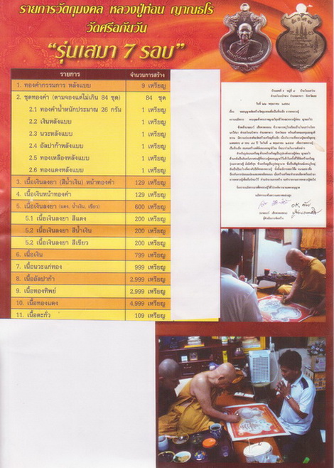 | รายละเอียด | จัดสร้างเพื่อสมทบทุนสร้างเจดีย์ที่วัดป่าศรีอภัย ตำบลนาอ้อ อำเภอเมือง จังหวัดเลย เมื่อปี ๒๕๕๕ ชอบก็โทรมานะครับ 083-282-2949, 085-458-1456 เข้าไปชมร้านไ้ด้ที่ http://www.web-pra.com/Shop/KONRAKPRATHAI (ร้านอริยสังฆบุตร) ครับ โอนมาที่ สมัชชินทร์ ประเสริฐแก้ว ธ.ทหารไทย (จำกัดมหาชน) ออมทรัพย์ สาขาเลย เลขที่บัญชี 380-2-33157-3 โทร. 083-282-2949 |