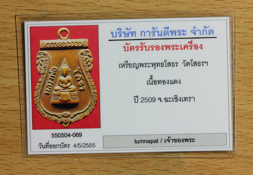 - เสมาหลวงพ่อโสธร 2509 นิยม มีบัตรรับรอง