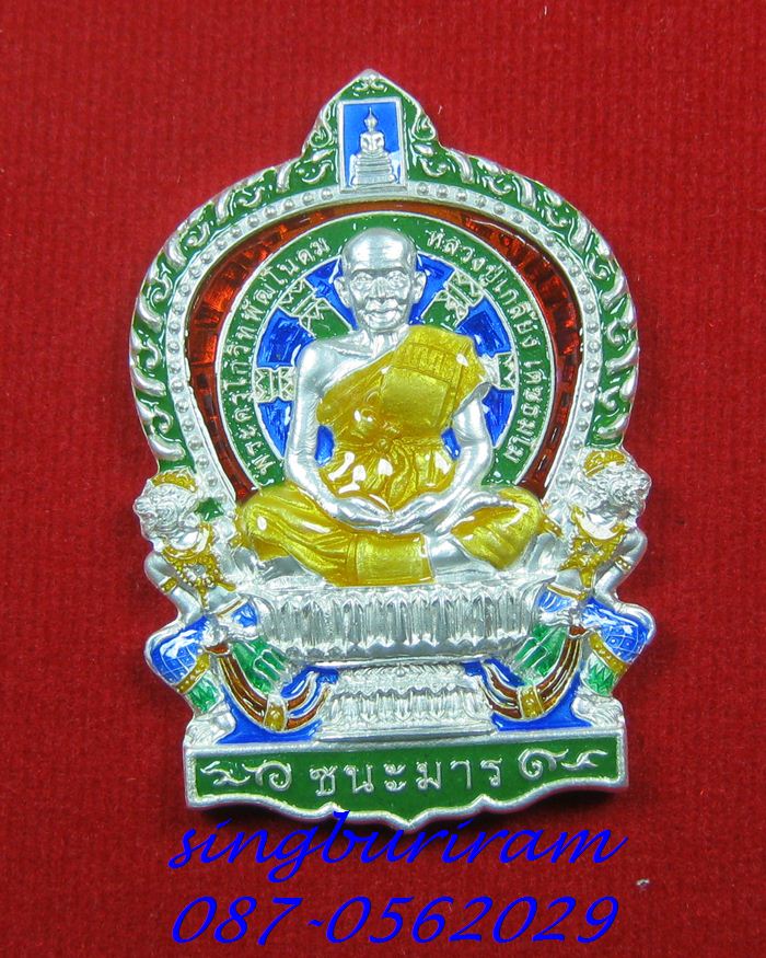 เหรียญนั่งพาน รุ่นชนะมาร หลวงปู่เกลี้ยง วัดโนนแกด เนื้อเงินลงยาน้ำเงิน หมายเลข๑๗๔ครับ