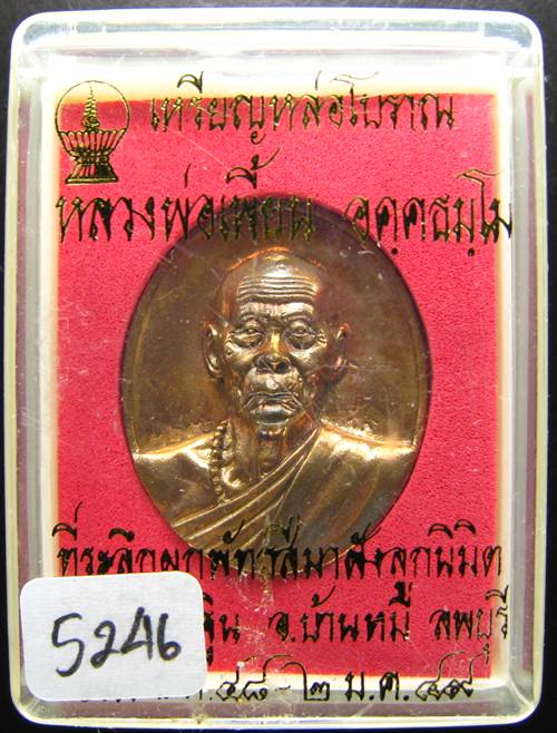 **เหรียญหล่อโบราณ หลวงพ่อเพี้ยน วัดเกรินกฐิน ปี 49 หมายเลข 5246 เคาะเดียวแดง**