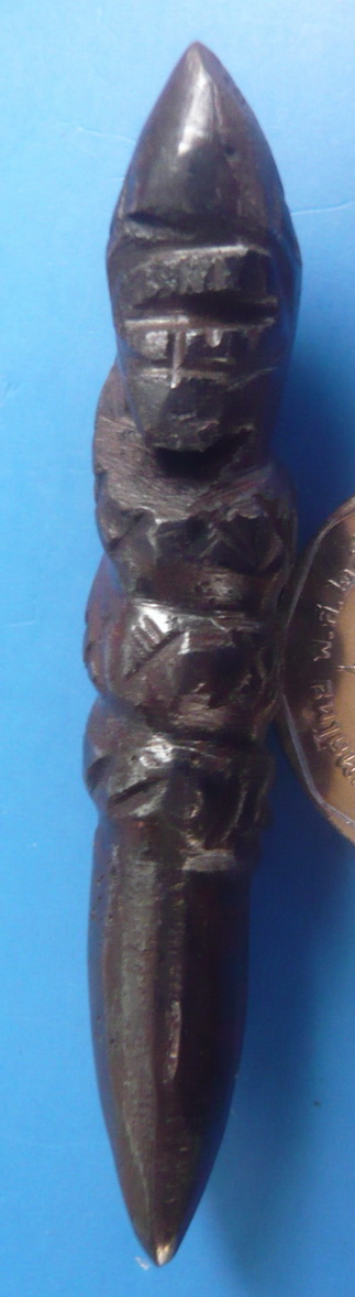 | รายละเอียด | สวยมาก หนักมากครับ จากแร่เขาอึมครึม ยาว ประมาณ6ซม มีคุณสมบัติ ดังนี้ ---๑. เมตตามหานิยมแก่คนทั้งหลาย ---๒. เรียกหรือนำโชคลาภโภคทรัพย์มาให้ ---๓. แคล้วคลาดขั้นพื้นฐาน ---๔. มีพลังผลักดันแก่ผู้ที่มีดวงถึงฆาต ให้เลื่อนออกไปได้ แต่ไม่เกิน ๗ ปี ---๕. อยู่ยงคงกระพัน ---๖. ผี ปีศาจ คุณไสย ทั้งมาร ไม่อยากเข้าใกล้ เพราะมีธาตุไฟ หรือเตโชธาตุมาก จึงดีทางป้องกันวิญญาณร้ายข่มเหงรังแก ใช้ทำน้ำมนต์ไล่ผี และแก้ไสยดำได้ ---นอก จากนี้ชาวบ้านหรือผู้รู้ที่รู้จักแร่อึมครึมเป็นอย่างดี ยังกล่าวไว้ว่า ผู้ที่พกแร่อึมครึมติดตัว ตะขาบ งูเงี้ยวเขี้ยวขอจะไม่ทำ-อันตราย จะเลื้อยผ่านไป ถึงเหยียบเข้าก็ไม่กัด อาจเนื่องมาจาก กำลังรัศมีของแร่อึมครึมคุ้มกัน เวลาที่งูเข้าใกล้แร่อึมครึมจะอ่อน-เปลี้ยโดยไม่รู้สาเหตุ จึงนับว่าแร่อึมครึมมีคุณแก่ผู้พกติดตัวเป็นอย่างมากครับ. หล็กไหลเป็นโลหะธาตุที่มีความลี้ลับพิสดาร แปลกประหลาดมหัศจรรย์แตกต่างไปจากโลหะธาตุทั้งปวง จึงได้ถูกจัดอยู่ในฐานะ “ธาตุกายสิทธิ์” ที่มีชีวิตจิตวิญญาณ ซึ่งเป็นไปตามวิบากของกฎแห่งกรรม ที่บันดาลให้วิญญาณในสังสารวัฏมาปฏิสนธิ ในสภาวะที่เป็นโลหะธาตุที่ศักดิ์สิทธิ์มี อิทธิฤทธิ์เหนือธรรมชาติทั่วไป แร่เขาอึมครึมโคตรเหล็กไหลงอก คือแข็งตัวไปตามธรรมชาติแล้ว ไม่เหมือนกับเหล็กไหลจำพวกน้ำหนึ่งที่ยังมีสภาพเป็นของเหลว ที่ต้องอาศัยถาคาอาคมในการตัด โคตรเหล็กไหลงอกนั้นไม่จำเป็นต้องอาศัยวิชาใดๆในการตัด สามารถนำออกมาได้เลย แต่ต้องทำพิธีขออนุญาตกับเจ้าที่และผู้ดูแลเหล็กไหลชนิดนี้เสียก่อน เพราะอาจจะเกิดอาเพศและอาถรรพ์ต่างๆ ตามมาถึงชีวิตได้ โครตรเหล็กไหลงอกมีลักษณะการงอกเหมือนเม็ดไข่ปลาสีดำอมเขียว มีหลายสีสัน เช่น สีรุ้ง สีดำอมเขียว สีดำอมแดง สีดำผสมเงิน เป็นต้น มักมีดวงวิญญาณของเจ้าป่าเจ้าเขาดูแลรักษามากมาย ทั้งเทพ คนธรรพ์ และพญานาค หรือมีญาณของพระฤๅษีที่มีตบะวิชาแรงกล้า ความสามารถ - ช่วยบรรเทาภัยพิบัติต่างๆที่จะเกิดขึ้นกับโลกได้(ถ้ามีจำนวนมาก) สามารถงอกตัวได้เรื่อยๆ หรือขยายตัวเองให้ใหญ่ขึ้นได้ ป้องกันชีวิตเจ้าของได้ดี สามารถโต้ตอบกับเจ้าของได้ ปรับอุณภูมิร่างกายให้กับเจ้าของ เมื่อถูกสัตว์มีพิษสัตว์กัด ต่อย สามารถฝนด้านหลังของเหล็กไหลนำมาใส่แผลแก้พิษและบรรเทาอาการปวดได้ ไม่กินดินปืนและฟอสฟอรัส สิ่งที่ชอบ - ชอบเสพน้ำผึ้ง โดยหยดน้ำผึ้งลงไปบนเหล็กไหล หรือจะน้ำแช่ลงไปเลย หรือว่าจะใส่แก้วเล็กๆวางข้างๆก็ได้เหมือนกัน กินพลังงานไฟฟ้าภายในบ้านไ