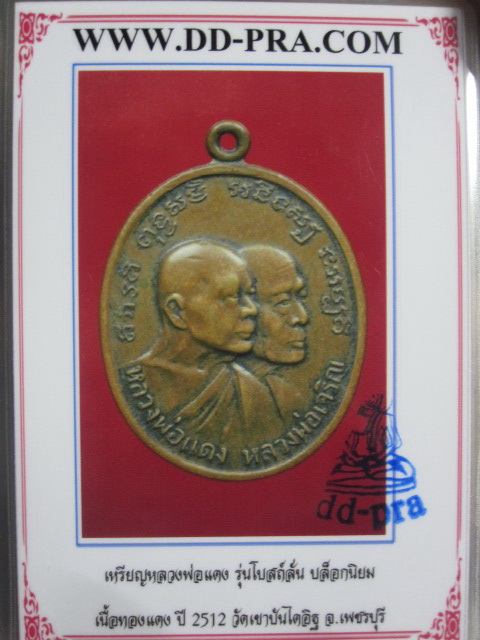 เหรียญหลวงพ่อแดง - หลวงพ่อเจริญ รุ่นโบสถ์ลั่น บล็อกนิยม วัดเขาบันไดอิฐ ปี พ.ศ.2512 เนื้อทองแดง+บัตร - webpra