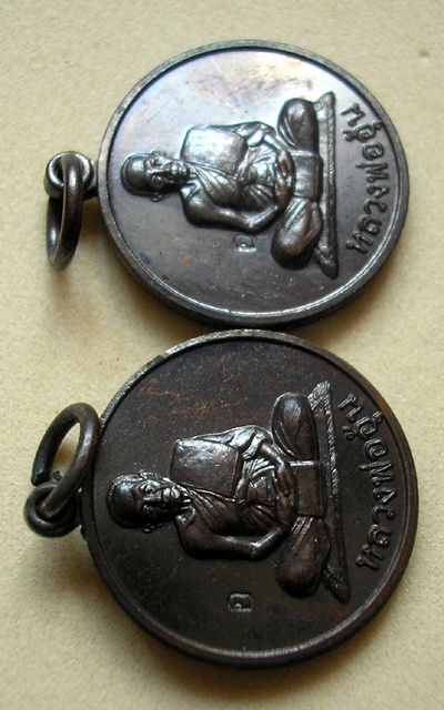 เหรียญแจกทาน หลวงพ่ออุ้น วัดตาลกง ปี47 ทองแดงรมดำ 2 เหรียญ