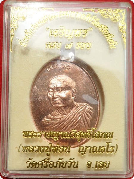 เหรียญเจริญพร ๗ รอบ เงินล้าน หลวงปู่ท่อน ญาณธโร วัดศรีอภัยวันจ.เลย เนื้อทองแดง โค๊ต ท หมายเลข ๔๐๔๘