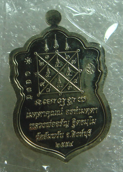 เหรียญเนื้ออัลปาก้า หลวงพ่อจรัญ วัดอัมพวัน จ.สิงห์บุรี รุ่นใบเสมาเศรษฐีใหญ่ หมายเลข 1435