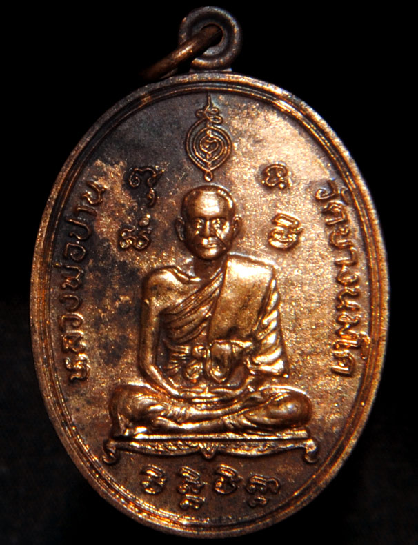 | รายละเอียด | * เหรียญมหาชัยมหาโชคลาภ "หลวงพ่อปาน วัดบางนมโค" หลังยันต์เกราะเพชร ปี ๒๕๒๕ * ประวัติ พระครูวิหารกิจจานุการ (หลวงพ่อปาน โสนันโทเถระ) ชาติภูมิของโสนันโทเถระ ท่านได้ถือกำเนิดที่ย่านวัดบางนมโค เมื่อวันที่ 16กรกฎาคม 2418 โยมบิดาชื่อ อาจ โยมมารดาชื่อ อิ่ม นามสกุล สุทธาวงศ์ โดยอาชีพทางครองครัว คือ ทำนา สาเหตุที่โยมบิดาขนานนามท่านว่า "ปาน" เนื่องจากท่านมีสัญลักษณ์ ประจำตัวคือปานแดงอยู่ที่นิ้วก้อยมือซ้ายตั้งแต่โคนนิ้วถึงปายนิ้วคล้ายปลอกนิ้ว หลวงพ่อปานในวัยเด็ก พระมหาวีระ ถาวโร หรือหลวงพ่อฤาษีลิงดำ ท่านได้เล่าไว้ในหนังสือประวัติหลวงพ่อปานว่า"...ท่าน (หลวงพ่อปาน) บอกว่า สมัยท่านเป็นเด็กอายุสัก 3-4 ขวบ ท่านวิ่งเล่นใต้ถุนบ้าน หลวงพ่อปาน ท่านเป็นคนบางนมโค และเป็นคนตำบลนั้น ไม่ใช่คนที่อื่น เป็นคนที่มีฐานะค่อนข้างจะมั่งคั่งอยู่สักหน่อย สมัยนั้น เขามีทาสกันที่บ้านท่านก็มีทาส ท่านบอกว่า ท่านวิ่งเล่นอยู่ใต้ถุนบ้านย่าของท่าน ก็ปรากฏว่าย่าของท่านกำลังป่วยหนัก ใกล้จะตาย เวลานั้นก็เห็นจะเป็นเวลาบ่ายสัก 2-3 โมงกว่า ท่านว่าอย่างนั้นโดยประมาณ คนทุกคนเขามาเยี่ยมย่า พ่อแม่ของท่านก็ไป เมื่อคนทุกคนขึ้นไปแล้วท่านบอก เห็นร้องดังๆ บอก แม่แม่ อรหันนะ อรหัน ภาวนาไว้ อรหัน พระอรหัน จะช่วยแม่ ก็ร้องกันเสียงดังๆ ท่านอยู่ใต้ถุน ท่านยืนฟังเขาว่าอรหันกันทำไม พอท่านสงสัยก็ย่องขึ้นไปที่หน้าบันไดชานเรือนพอท่านขึ้นไปแล้วก็ปรากฏว่า ผู้อยู่เขาเอาปากกรอกไปที่ข้างหูของคุณย่าท่าน บอกแม่ แม่อรหันนะ อรหัน แต่ว่าพอผู้ใหญ่เขามองเห็นท่านเข้าไป เขาก็ไล่ท่านไปเขาจะหาว่า ไอ้เจ้าเด็กมันรุ่มร่าม ท่านก็เลยไปเล่นใต้ถุนบ้านอื่น พอมาถึงตอนเย็นเวลากินข้าว ท่านแม่ก็ป่าวหมู่เทวฤทธิ์คือ เรียกลูกกินข้าว เมื่อทุกคนมาพร้อมกันแล้วท่านแม่ก็จัดกับข้าวมาวางกลาง สำหรับตัวท่านเองเป็นเด็ก เขาเอาข้าวใส่จานมาให้แล้วเอาแกงเผ็ด ท่านบอกว่า ไอ้แกงฉู่ฉี่แห้ง ท่านชอบ เขาใส่มาให้เรียกว่า ไม่ต้องหยิบกับข้าว กินแบบประเภทข้าวราดแกง เวลาที่ท่านกินเข้าไปแล้วมานั่งนึกว่า กับข้าวมันอร่อยถูกใจ ก็เกิดความชุ่มชื่น พอจิตมันนึกขึ้นได้ว่าเอาบอก อรหัง อรหัง นึกถึงคำว่า อรหัง ขึ้นมาได้ ท่านก็เลบปลื้มใจอย่างไรชอบกล เลยเปล่งวาจาออกมาดังๆ ว่า อรหัง อรหัง ว่า 2- 3 คำ ท่านแม่ที่มองตาแป๋วลุกพรวดจับชามข้าวที่ท่านถืออยู่วางไว้ จับตัวท่านวางปังออกไปนอกชาน แล้วร้องตะโกนสุดเสียง เอ้า มึงจะตายโหง ตายห่าก็ตายคนเดียว มันจะมาว่าอรหังที่นี่ได้รึ? คำว่า อรหัง พุทโธ นี่