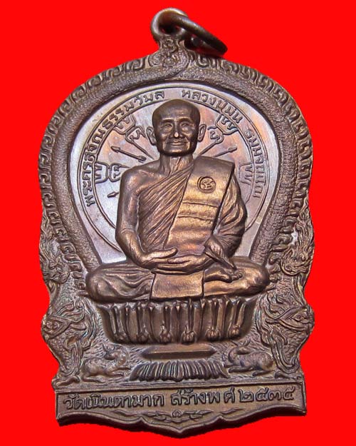 เหรียญนั่งพาน รุ่นแรก หลวงปู่ม่น วัดเนินตามาก จ.ชลบุรี ปี 2535 เนื้อทองแดง