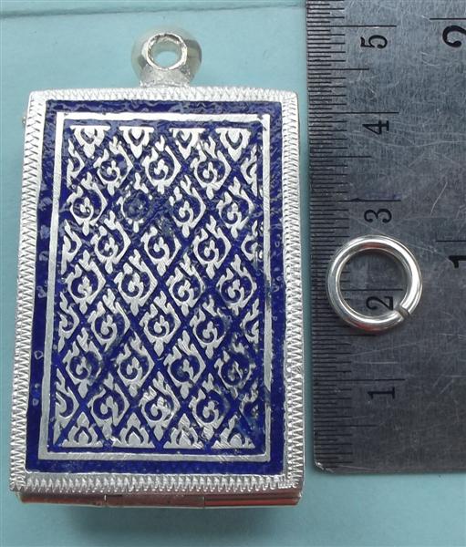 | รายละเอียด | ตลับเงินลงยา หลังปิดแกะลายลงยา #C ขนาดตามที่แสดงในภาพ เหมาะสำหรับพระสมเด็จ อื่นๆ พร้อมห่วงเงิน ๑ ห่วง และมุด ๑ อัน |