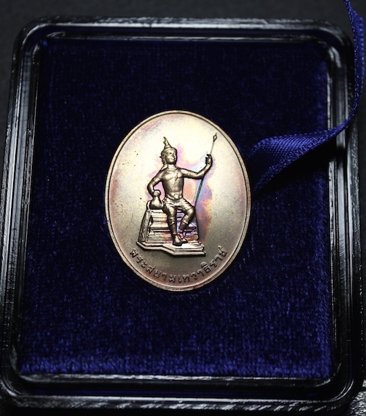 | รายละเอียด | เหรียญพระสยามเทวาธิราช ครบรอบ ๖๐ปี ธนาคารแห่งประเทศไทย พร้อมกล่องเดิม (เป็นอีกวัตถุมงคลที่หลวงตามหาบัว เมตตามาอธิฐานจิตให้ถึงที่แบงค์ชาติ) เหรียญพระสยามเทวาธิราชนี้ จัดสร้างขึ้นเมื่อปี ๒๕๔๕ โดยการจัดสร้างครั้งนั้นได้มีการนำแผ่นยันต์ของพระเกจิอาจารย์ทั่งประเทศไทยมาเป็นส่วนประกอบของมวลสาร และชนวนต่างๆ พิธีกรรมยิ่งใหญ่ พระเกจิอาจารย์เข้าร่วมพิธีปลุกเสกหลายท่าน รายชื่อครูบาอาจารย์ที่รับนิมนต์ไปฉันภัตตาหารและเจริญพุทธมนต์ ในงานครบรอบ 60 ปี ธนาคารแห่งประเทศไทย 10 ธันวาคม 2545 (จัดเรียงลำดับตามอายุพรรษา) 1.พระธรรมวิสุทธิมงคล (หลวงตามหาบัว ญาณสัมปันโน) วัดเกษรศีลคุณ (วัดป่าบ้านตาด) ต.บ้านตาด อ. เมือง จ.อุดรธานี 2.สมเด็จพระมหาธีราจารย์ วัดชนะสงคราม เขตพระนคร กรุงเทพฯ 3.พระพุทธพจนวราภรณ์ วัดเจดีย์หลวงวรวิหาร อ.เมือง จ.เชียงใหม่ 4.พระเทพวิสุทธิมงคล (หลวงปู่ศรี มหาวีโร) วัดป่าประชาคมวนาราม(ป่ากุง) ต.ศรีสมเด็จ อ.ศรีสมเด็จ จ.ร้อยเอ็ด 5.พระอาจารย์ บุญมี ปริปุณฺโณ วัดป่าบ้านนาคูณ อ.บ้านผือ จ.อุดรธานี 6.พระอาจารย์ เพียร วิริโย วัดป่าหนองกอง ต.บ้านค้อ อ.บ้านผือ จ.อุดรธานี 7.พระอาจารย์ บุญเพ็ง เขมาภิรโต วัดถ้ำกลองเพล ต.โนนทัน อ.เมือง จ.หนองบัวลำภู 8.พระอาจารย์ ลี กุสลธโร วัดภูผาแดง อ.หนองวัวซอ จ.อุดรธานี 9.พระครูการุณย์ธรรมนิวาส (หลวงปู่หลวง กตปุญฺโญ) วัดป่าสำราญนิวาส ต.ศาลา อ.เกาะคา จ.ลำปาง 10.พระญาณวิศิษฏ์ (ทอง จนฺทสิริ) วัดอโศการาม ต.ท้ายบ้าน อ.เมือง จ.สมุทรปราการ 11.พระเทพเมธาภรณ์ (เอื้อม ชุตินฺธโร) วัดสนามพราหมณ์ อ.เมือง จ.เพชรบุรี 12.พระอาจารย์ ปรีดา(ทุย) ฉนฺทกโร วัดป่าดานวิเวก อ.ปากคาด จ.หนองคาย 13.พระอาจารย์ บัวเกตุ ปทุมสีโล วัดแม่ปาง ต.สันติคีรี อ.แม่ลาน้อย จ.แม่ฮ่องสอน 14.พระอาจารย์ เผย วิริโย วัดถ้ำผาปู่ ต.นาอ้อ อ.เมือง จ.เลย 15.พระอาจารย์ อุทัย สิริธโร วัดถ้ำพระภูวัว ต.โสกก่าม อ.เซกา จ.หนองคาย 16.พระอาจารย์ ฟัก สนฺติธมฺโม วัดเขาน้อยสามผาน ต.สองพี่น้อง อ.ท่าใหม่ จ.จันทบุรี 17.พระอาจารย์ อ้ม สุขกาโม วัดป่าภูผาผึ้ง ต.กกตูม อ.ดงหลวง จ.มุกดาหาร 18.พระอาจารย์ อุ่นหล้า ฐิตธมฺโม วัดป่าแก้วชุมพล ต.ค้อใต้ อ.สว่างแดนดิน จ.สกลนคร 19.พระอาจารย์ ทองอินทร์ กตปุญฺโญ วัดผาน้ำทิพย์ ต.ผาน้ำย้อย อ.หนองพอก จ.ร้อยเอ็ด 20.พระอาจารย์ บุญกู้ อนุวฑฺฒโน วัดพระศรีมหาธาตุ เขตบางเขน กรุงเทพฯ 21.พระครูถาวรธรรมโกศล (พระอาจารย์ด้วง) วัดโยธานิมิตร อ.เมือง จ.อุดรธานี 22.พระครูวิทิตศาสนกิจ(ไพโรจน์ วิโรจโน) วัดดอยปุย ต.สุเทพ อ.เมือง จ.เชียงใหม่ 23.พระวิสุทธิสังวรเถร (เลี่ยม ฐิตธมฺโม) วัดหนองป่าพง ต.บุ่งหว