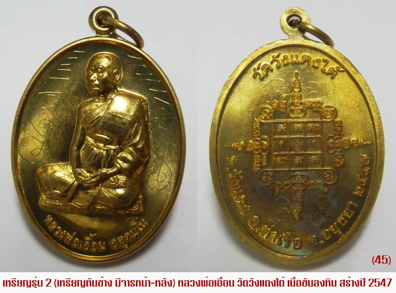 | ชื่อพระเครื่อง | เหรียญหันข้าง รุ่น 2 ((มีจารหน้า-หลัง)) หลวงพ่อเอื้อน วัดวังแดงใต้ อยุธยา (45) |
