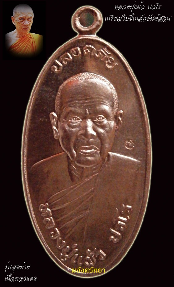 เหรียญใบขี้เหล็กยันต์สวน หลวงปู่แผ้ว ปวโร พิมพ์ใหญ่ รุ่นสุดท้าย เนื้อทองแดง พร้อมกล่อง