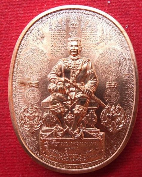 เหรียญระเบิดมหายันต์ “ พิมพ์พระนเรศวรมหาราช ทรงนั่งบัลลังค์ใหญ่ เนื้อทองแดง