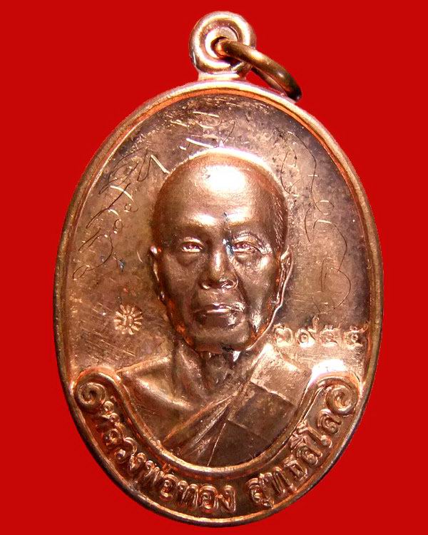 @@วัดใจ 50 บาท@เหรียญรุ่นแรก หลวงพ่อทอง วัดพระพุทธบาทเขายายหอม เนื้อทองแดง หมายเลข ๓๙๕๕ จารครบสูตร