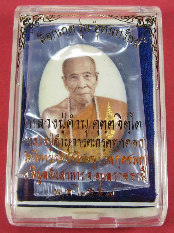 ล๊อกเก็ตฉากขาวทอง รุ่นสุดท้าย หลวงปู่คำบุ คุตฺตจิตฺโต วัดกุดชมภู จ.อุบลราชธานี รุ่นอุดมทรัพย์