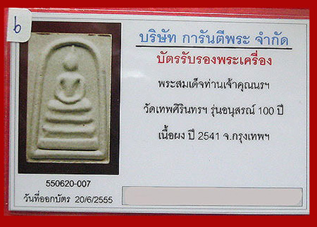พระสมเด็จท่านเจ้าคุณนรฯ วัดเทพศิรินทร์ 100 ปี กล่อง+ บัตรรับรอง