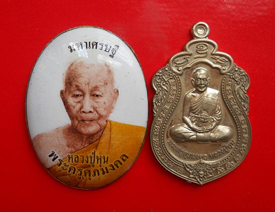 ((เคาะเดียว))ล็อคเก็ตมหาเศรษฐี+เหรียญสรงน้ำ เนื้ออัลปาก้า หลวงปู่หุน วัดบางผึ้ง พร้อมกล่องเดิมๆ