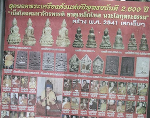 | รายละเอียด | มวลสารหลักที่ใช้ในการจัดสร้าง ธาตุเหล็กไหล พระธาตุ 500 อรหันต์ พระธาตุข้าว พระธาตุ 500 อรหันต์ พระธาตุข้าว หงอนพญานาค แก้วขนเหล็ก เพชรหน้าทั่ง ผงเหล็กไหลฤาษี ผงเหล็กไหลเงินยวง ผงเหล็กไหลตาแรด โคตรเหล็กไหลสีเงินยวง ขี้เหล็กไหล เหล็กย้อย เหล็กทรหด หยกพันปี แร่บางไผ่ ผงธนบัตรเก่า ผงตะไบเหล็กน้ำพี้ (ถลุงแล้ว) แร่เหล็กน้ำพี้ไหลเพชรดำ ขมิ้นหินหมื่นปี ข้าวตอกพระร่วง แก่นไม้สักหินอายุ 160 ล้านปี ลูกมณีโคตร คดกะลา กะลาตาเดียว กะลาไม่มีตา (กะลามหาอุด) มะพร้าวลูกกรอก กัลปังหาดิน ดินโป่ง ดินกลางใจเมือง และน้ำจากศาลหลักเมือง 76 จังหวัด ตะกรุดข้าวสารหิน คดหอย ทรายเสก ผงพระครูเทพโลกอุดร ผงหลวงปู่ดู่ วัดสะแก ผงหลวงปู่แหวน ผงจิตรลดา ผงพระปิลันทน์ ผงพระตุ๊กตาวัดพลับ ผงหลวงปู่ทิมวัดระหารไร่ ผงหลวงพ่อแก้ววัดเครือวัลย์ แป้งเสกหลวงปู่อยู่วัดไทรโยง ผงว่านหลวงพ่อเมี้ยนวัดโพธิ์กบเจา เศษพระหักหลวงพ่อมีวัดมารวิชัย เศษพระหักหลวงปู่คำพันธ์วัดธาตุมหาชัย และวัดต่าง ๆ อีกมากมาย เขากวางคุด น้ำมันมนต์หลวงพ่อเมี้ยนวัดโพธิ์กบเจา ชานหมากเสกหลวงพ่อดำวัดท่าทอง ดินวิเศษสีเหลือง สมุนไพร 300 กว่าชนิด น้ำมนต์ 100 ตุ่ม หลวงปู่หงส์วัดเพชรบุรี ดินวิเศษสีเขียว แร่เงิน แร่ทอง แร่นาค ผงธูปสมเด็จโตวัดระฆัง ผงธูปวัดเกศไชโย ผงธูปหลวงปู่ทวดวัดช้างให้ ผงธูปหลวงพ่อแช่มวัดท่าฉลอม ผงธูปหลวงพ่อจรัญวัดอัมพวัน แม่ลิ้มกอเนี่ย ผงธูปศาลเจ้าพ่อเสือ ผงธูปวัดเล่งเน่ยยี่ ผงธูปวัดไต๋ฮงกง พระบรมสารีริกธาตุ หินพระธาตุเขา 300 ยอด พระธาตุสิวลีสีขาว พระธาตุสิวลีสีทอง พระธาตุแก้วขวานฟ้าผ่าเนื้อหิน 16 อัน ข้าวสารหินหมื่นปี ข้าวสารดำพันปี ผงมณีรัตนะ โคตรเหล็กไหล (สีดำเงา) แร่เกาะล้าน เหล็กย้อย ลูกมณีโคตร อุกามณี (สะเก็ดดาว) ไม้กลายเป็นหิน ดอกไม้หิน เพชรน้ำค้าง หินเขี้ยวหนุมาน ขมิ้นขาวเปลือกหอย 75 ล้านปี ไม้งิ้วดำ คดปลวก ลูกธนูคนธรรพ์ แร่ทรายเงิน แร่ทรายทอง ผงงาช้าง งาช้างตายพราย งาช้างกระเด็น งาช้างกระดอน ผงเพชรแท้ เศษพลอยเมืองจันทร์ ผงเก่า วัดระฆัง ผงสร้างพระหลวงพ่อคูณวัดบ้านไร่ ผงสร้างพระหลวงพ่อแพวัดพิกุลทอง ผงสร้างพระหลวงพ่อเปิ่น วัดบางพระ ผงสร้างพระหลวงพ่อคงวัดบางกระพ้อม ผงสร้างพระหลวงปู่นิลวัดครบุรี ผงสร้างพระหลวงพ่อยิด วัดหนองจอก ผงสร้างพระหลวงพ่อเชิญวัดโคกทอง ผงสร้างพระหลวงปู่คำพันธ์วัดธาตุมหาชัย ผงสร้างพระ หลวงพ่อเกษมเขมโกสุสานไตรลักษณ์ ผงสร้างพระอาจารย์ต่าง ๆ อีก 300 กว่ารูป (ซึ่งไม่สามารถลงหมดได้) เศษพระหักของวัดระฆัง เศษพระหักวัดปากน้ำ 