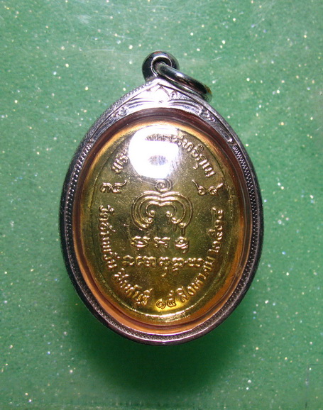 เหรียญแจกวันเกิด หลวงพ่อจรัญ ปี34 สีน้ำเงิน เลี่ยมเงินพร้อมบัตรรับรองเวป U - webpra