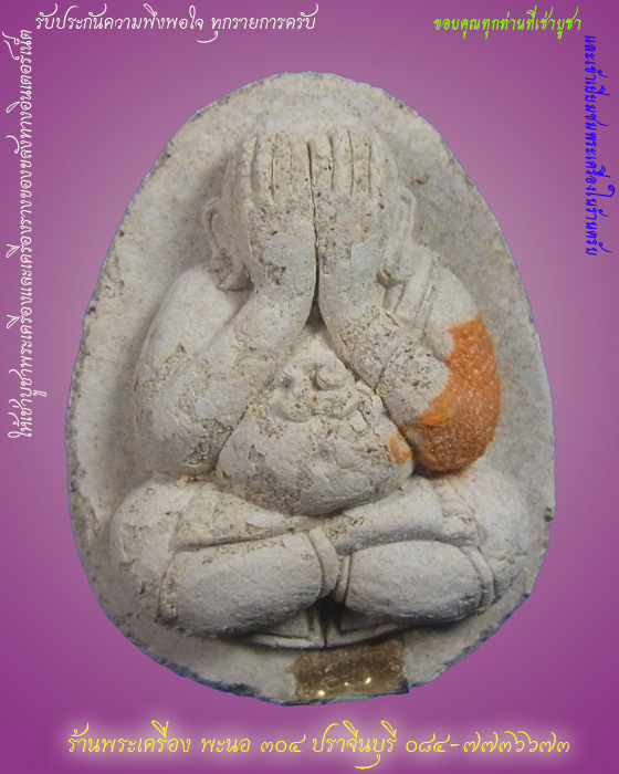 | รายละเอียด | พระปิดตา มหาลาภ สารพัดดี รุ่นไตรมาส เนื้อเทียนชัยด้านหลังบรรจุปรกใบมะขาม วัดบ้านคลอง รหัส ๐๘-๐๑-๐๒ (((((เนื้อเทียนชัยด้านหลังบรรจุปรกใบมะขามเป็นเนื้อที่ปั๊มแล้วพระเกิดการกระเทาะ หายากกว่าเนื้ออื่นๆครับ พร้อมซองเดิมๆจากวัดครับ))))) รุ่นนี้บรรจุกรุใต้ฐานพระประธานในโบสถ์วัดบ้านคลองครับ -ฝังตะกรุดกะไหล่ทอง หลวงพ่อคูณ -หลังบรรจุปรกใบมะขาม หลวงพ่อคูณ -ผสมผงพรายกุมาร ติดจีวร หลวงปู่ทิม ดำเนินการจัดสร้างตั้งแต่ปี พ.ศ.2536 - 2538 *พระปิดตามหาลาภสารพัดดี รุ่นไตรมาส วัดบ้านคลอง(วัดสายวารี) อ.พนัสนิคม(เกาะจันทร์) จ.ชลบุรี ดำเนินการจัดสร้างตั้งแต่ปี พ.ศ.2536 - 2538 ด้านหน้า : บรรจุจีวรหลวงปู่ทิม,ตะกรุดกะไหล่ทอง โค๊ดนะ2ตัว (หลวงพ่อคูณ อธิษฐานจิตปลุกเสก) ด้านหลัง : ประทับหลังยันต์นะมหาเศรษฐี อุณาโลมครอบจักรวาล และฝังพระนาคปรกใบมะขาม ตอกโค๊ดนะ(หลวงพ่อคูณ อธิษฐานจิตปลุกเสก) มวลสารหลักที่ใช้ในการจัดสร้าง 1. จีวรเก่า, ผงพรายกุมาร และพระเครื่องชำรุดอีกจำนวนหนึ่งของหลวงปู่ทิม วัดละหารไร่ 2. ผงจากพระเครื่องเก่า108อาจารย์ 3. ผงของหลวงปู่โต๊ะ วัดประดู่ฉิมพลี 4. ผงของวัดบางขุนพรมปี 09 5. ปูนเปลือกหอย, น้ำอ้อย, น้ำผึ้ง, น้ำมันตั้งอิ๊ว 6. ผงว่าน108,ผงเกสร108,ผงธูป108วัด 7. ผงพุทธคุณต่างๆ,ผงอิทธิเจ,ผงปัตถะมัง,ผงใบลาน,ผงชานหมาก 8. ผงกระเบื้องโบสถ์วัดระฆัง 9. ผงพระปิดตาของหลวงปู่เฮี้ยง วัดป่า 10. ผงจากพระเครื่องชำรุดของกรุลำพูนอีกจำนวนหนึ่ง เป็นต้น 11.พระนาคปรกใบมะขาม ตอกโค๊ดนะ ของหลวงพ่อคูณ 12. ตะกรุดกะไหล่ทอง โค๊ด นะ มิ ของหลวงพ่อคูณ ประวัติการจัดสร้างพระปิดตาสารพัดดี **เมื่อปีพ.ศ.2536 ทางวัดกำลังจะก่อสร้างศาลาการเปรียญแต่ยังขาดแคลนทุนทรัพย์ จึงได้จัดสร้าง "พระปิดตามหาลาภรุ่นไตรมาส" ขึ้นเพื่อหารายได้ โดยได้รับเมตตาจาก พระครูวิจิตรธรรมภิรัต เจ้าอาวาสวัดละหารไร่รูปปัจจุบัน ได้มอบจีวรเก่าผงพรายกุมาร และพระเครื่องชำรุดอีกจำนวนหนึ่งของหลวงปู่ทิม อีกทั้งพระมหาสรวง คณะ 2 วัดระฆังฯ ได้มอบกระเบื้องหลังคาโบสถ์วัดระฆังฯ ให้มาเป็นมวลสารในการจัดสร้าง โดยได้นำมารวมกับมวลสารของทางวัดที่สะสมไว้เช่น ผงพุทธคุณ, ผงอิทธิเจ, ผงปถมัง, ผงบางขุนพรหมปี 09, ผงหลวงปู่โต๊ะ วัดประดู่ฉิมพลี, ผงพระปิดตาหลวงปู่เฮี้ยง วัดป่า ผงใบลานเก่า ผงว่าน 108 ผงเกสร 108 ผงธูป 108 วัด และผงจากพระเครื่องชำรุดกรุลำพูนอีกจำนวนหนึ่ง จำนวนการจัดสร้างรวม 111,515 องค์ จำแนกดังนี้ "พระปิดตาไตรมาส" ของวัดบ้านคลองนี้มีเพียงพิมพ์เดียว แยกเป็น 5 เนื้อ คือเนื้อผงใบลาน, เนื้อเกสร, เนื้อผงรูป, เนื้อเทียนชัย และ เนื้อกระเบื