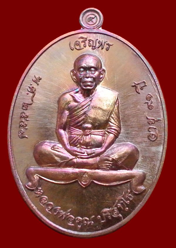 หลวงพ่อคูณ รุ่นเจริญพรบน ๙๑ วัดบ้านกอก เนื้อนทองแดง หมายเลข ๑๒๒๐ พร้อมกล่อง
