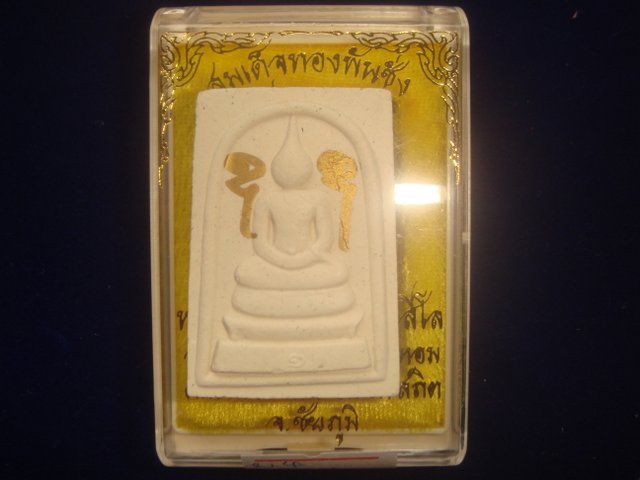 4.พระพิมพ์สมเด็จทองพันชั่ง รุ่นแรกหลวงพ่อทองปลุกเสก เนื้อผงมีจารหมึกหน้าหลัง.