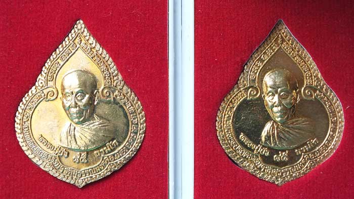 เหรียญหยดน้ำ หลวงปู่บัว ถามโก วัดศรีบูรพาราม เนื้อทองเหลือง จัดไป 2 เหรียญ เบอร์สวยๆ # 1600 + 1660 - webpra