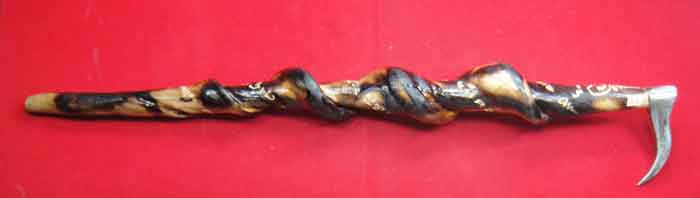 | รายละเอียด | ขนาด-ลักษณะ : ความยาวตะขอ 3 นิ้ว หนา 3/4 นิ้ว ด้ามตะขอ ยาว 21 นิ้ว เส้นผ่าศูนย์กลาง 1 นิ้ว ทำจากไม้คันจ้องหรือไม้บิดเกลียวลนไฟเขียนลวดลายอักขระและยันต์ ความยาวตะขอ 5.5 ซ.ม. หนา 1 ซ.ม. ด้ามตะขอ ยาว 20 ซ.ม.เส้นผ่าศูนย์กลางด้าม 2.5 ซ.ม. ด้ามทำจากไม้เถาวัลย์รัดเกลียวลนไฟลงจารเขียนลวดลายและอักขระยันต์อุณาโลมและพระคาถาหัวใจพระเจ้า๕ พระองค์และอุณาโลม เหมาะสำหรับ พกติดตัว ประดับบ้าน ติดรถ เป็นวัตถุมงคลเสริมสิริมงคล เสริมบารมีคุ้มครอง เหมาะในการติดแขวนผนัง,ติดห้องทำงาน หรือมอบเป็นของกำนัล แด่คนที่ท่านรักค่ะ ตะขอช้าง เป็น เทพวราวุธของพระพิฆเณศวร ซึ่งเป็นโอรสของพระอิศวร ขอช้างได้รับความนับถือว่าเป็นสัญลักษณ์ของสิ่งมงคลนั้น ตำราเล่าว่า " ในป่าหิมพานต์ ครั้งหนึ่งเกิดมีช้างพลายเชือกหนึ่งชื่อ เอกทันต์ เป็นช้างที่ดุร้ายมีฤทธิ์มากเที่ยวสร้างความเดือดร้อนให้เทวดาและมนุษย์จนอยู่ไม่เป็นสุข ไม่มีใครปราบได้ พระอิศวรจึงทรงมีบัญชาให้พระนารายณ์ลงมาปราบ ช้างเอกทันต์พยายามหลบหนีเพราะรู้ตัวดีว่าสู้ไม่ได้ พระนารายณ์ตามไปจนพบ และทรงใช้บ่วงบาศคล้องเอาช้างเอกทันต์ไว้ได้ แต่เกิดปัญหาว่าบริเวณที่จับช้างได้นั้น เป็นทุ่งกว้างโล่ง ไม่มีต้นไม้หาที่ผูกช้างไม่ได้ ในที่สุดจึงทรงปักตรีศูลอันเป็นเทพศาตราวุธลงไปในดิน แล้วตรัสสั่งให้เทพศาตราวุธนั้นเป็นต้นไม้ใหญ่ ทันใดนั้นเทพศาตราวุธก็กลายเป็นต้นมะตูมใหญ่ จึงทรงผูกช้างไว้กับต้นมะตูมทรมานจนช้างคลายพยศ แล้วเสด็จขึ้นทรงพร้อมกับหักกิ่งมะตูมอันเป็นหนามมาทำเป็นขอช้าง บังคับนำช้างไปเฝ้าพระอิศวร และต่อมา พระนารายณ์ก็ทรงมอบขอช้างนั้นแก่พระพิฆเณศวร เป็นเทพอาวุธประจำพระองค์ดังกล่าวแล้ว ดังนั้นไม้มะตูมจึงถือว่าเป็นมงคล มักจะนำใบมะตูมใส่ลงไปในน้ำมนต์หรือรดน้ำมนต์แล้วก็เอาใบมะตูมทัดหู ด้วยถือว่าเป็นสิริมงคลเหมือนกับขอช้าง - ขอสับช้างถือเป็นของมงคลวัตถุอาถรรย์ที่พอเจอโดยทั่วไปแต่ยากนักที่จักนำมาบูชาหรือได้มาเพราะเป็นที่หวงแหนกันของเจ้าของควาญช้าง ขอช้างเป็นหนึ่งในเครื่อง ของมงคลแปดประการตามตำราพรามหม ซึ่งถือได้ว่าเป็นของสุดยอดที่แสวงหาอยากได้มาบูชากันยิ่งนัก - ขอสับช้างทำขึ้นจากเหล็กอาถรรย์ ทำตามกรรมวิธีการตีขอด้วยพิธีกรรมการทำขอสับช้างแบบโบราณ โดยช่างที่สืบทอดต่อๆกันมา ด้ามทำด้วยไม้คันจ้อง หรือ ไม้บิดเกลียว ซึ่งเป็นไม้มงคลหายาก หลังจากนั้นนำไปให้หมอประกำแห่งสุรินทร์ ได้ทำพิธีไหว้ศาลประกำเชิญครูประกำและบรรจุเวทอาคมเพื่อเพิ่มเวทมนต์คาถาอาค