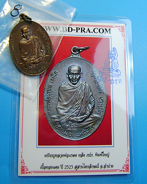 | รายละเอียด | เหรียญหลวงพ่อเกษม หลังภปร. ปี 2523 พิมพ์ใหญ่ เนื้อทองแดง สุสานไตรลักษณ์ จ.ลำปาง สภาพสวยมากครับผิวเดิมๆ พิธีใหญ่ พร้อมบัตรรับรองเว็บเพื่อนบ้านครับ ......... ..หลวงพ่อเกษม เขมโก เป็นพระบริสุทธิสงฆ์ผู้ปฏิบัติดีปฏิบัติชอบ ที่ไม่ชอบโอ้อวด ไม่อยากให้ใครพูดถึงเรื่องอภินิหารและความศักดิ์สิทธิ์ของท่าน พระเครื่องและเหรียญที่หลวงพ่อได้เมตตาปลุกเสกให้ ได้เกิดอภินิหารคุ้มครองผู้ศรัทธาเลื่อมใสนับถือ จนเป็นที่กล่าวขวัญของประชาชนทั่วไปอย่างกว้างขวาง โดยเชื่อกันว่า หลวงพ่อได้บรรลุธรรมชั้นสูง มีพลังจิตแก่กล้า มีคุณวิเศษเหลือคณานับประการ มีความสามารถพากเพียรในการปฏิบัติธรรมได้อย่างเอกอุ จนยากที่จะหาใครมาเทียบได้ เป็นพระอริยสงฆ์ที่สมควรแก่การกราบไหว้เป็นอย่างยิ่ง วัตรปฏิบัติอันเคร่งครัดในพระวินัยอันมั่นคงนี้เอง ที่ทำให้พระบาทสมเด็จพระเจ้าอยู่หัว และสมเด็จพระนางเจ้าฯ พระบรมราชินีนาถ ได้เสด็จฯ ไปทรงสักการะหลวงพ่อถึงที่สุสานไตรลักษณ์ จ.ลำปาง ***"สำหรับเหรียญรุ่นนี้ หลวงพ่อท่านได้กล่าวไว้ว่า ท่านจะอธิฐานจิตปลุกเสกให้เข้มขลังเป็นที่สุด ก็ด้วยตราพระปรมาภิไทยย่อ ภปร.ด้านหลังเหรียญ เป็นสำคัญนั่นเอง".***** |