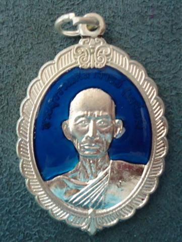 เหรียญกระไหล่เงินลงยาสีน้ำเงินหลวงพ่อเสงี่ยม วัดสุวรรณเจดีย์ อยุธยา