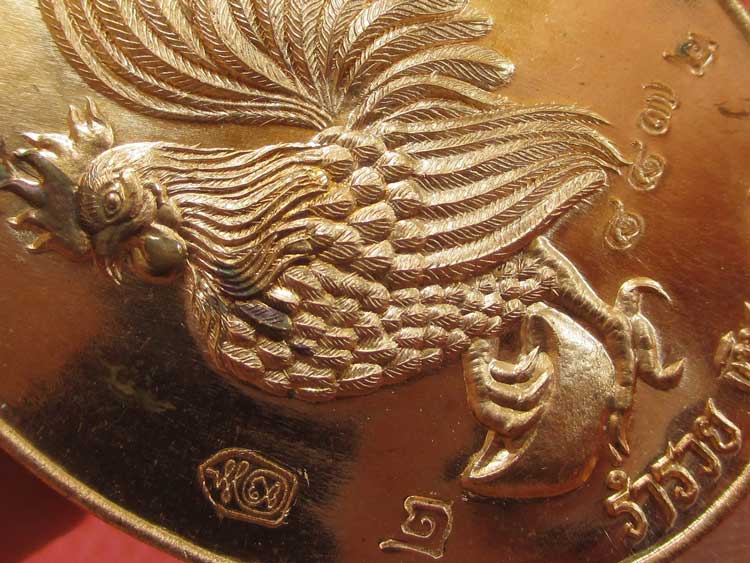 เหรียญพญาไก่หยิบทอง มหาเศรษฐี หลวงปู่สรวง วัดถ้ำพรหมสวัสดิ์ จ.สระบุรี ปี 2557 เนื้อทองแดงผิวไฟ หมายเ