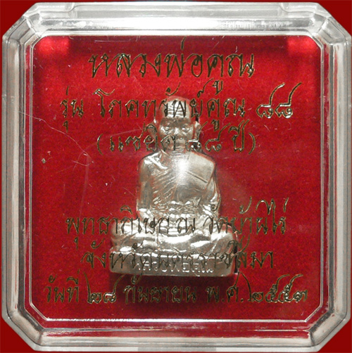 หลวงพ่อคูณ รุ่นโภคทรัพย์คูณ ๘๘ เนื้อทองขาว หมายเลข 735 พิมพ์ใหญ่