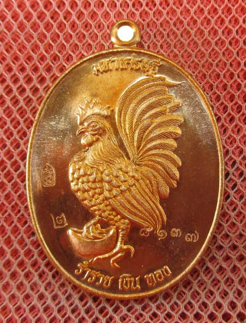 เหรียญพญาไก่หยิบทอง มหาเศรษฐี หลวงปู่สรวง วัดถ้ำพรหมสวัสดิ์ จ.สระบุรี ปี 2557 เนื้อทองแดงผิวไฟ หมายเ