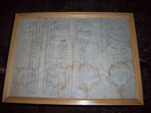 ผ้ายันต์โบราณคนชังรัก-คนรักชังขนาด75*45cmกรอบไม้เรียบร้อยครับ