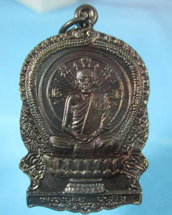 เหรียญนั่งพาน มหาเศรษฐี หลวงปู่ลือ ปุญโญ วัดป่านาทามวนาวาส จ.มุกดาหาร เนื้อทองแดง พร้อมกล่องผิวรุ้งๆ