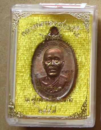 เหรียญบูชาครู หลวงพ่อทอง วัดพระพุทธบาทเขายายหอม จ ชัยภูมิ ปี2557 เนื้อทองแดงมันปู สร้าง9999เหรียญ หม