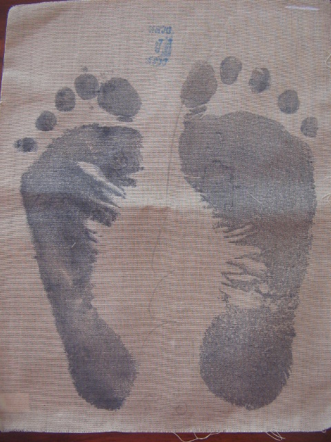ผ้ายันต์รอยเท้า หลวงปู่สรวง วัดไพรพัฒนา ศรีสะเกษ ขนาด 8.5 x 12 นิ้ว ปี 35 มีจาร เคาะเดียวครับ
