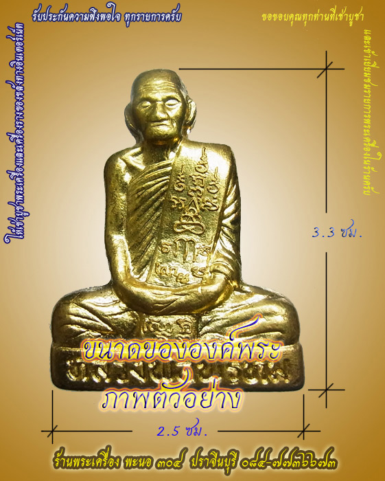| รายละเอียด | รูปหล่อปั้มลอยองค์ หลวงพ่อพรหม วัดช่องแค รุ่น เข่ากว้างหลังเต็ม เนื้อทองเหลือง ตอกโค๊ตระฆังใต้ฐาน งานต้มยาแจกทาน ครั้งที่ ๑๐๒ ปีที่ ๑๒๘ ในวันที่ ๑๕ เมษายน ๒๕๕๖ (เดือน ๕ ขึ้น ๕ ค่ำ) เวลา ๐๙.๑๙ ทำพิธีเททองรูปเหมือนหลวงพ่อพรหมเท่าองค์จริง วัดช่องแค จ.นครสวรรค์ เกจิอาจารย์นั่งปรกปลุกเสกยาและวัตถุมงคล วันที่ ๒๘ มีนาคม ๒๕๕๖ เวลา ๑๓.๑๙ น. ๑.พระครูนิพันธ์สาธุกิจ เจ้าคณะอำเภอตาคลี ๒.หลวงพ่อรวย วัดตะโก จ.อยุธยา ๓.หลวงพ่อเพิ่ม วัดป้อมแก้ว จ.อยุธยา ๔.หลวงพ่อพูน วัดบ้านแพน จ.อยุธยา ๕.หลวงพ่อเพี้ยน วัดเกริ่นกฐิน จ.ลพบุรี ๖.หลวงพ่อชนินทร์ วัดรัศมีพรหมโพธิโก จ.อุตรดิตถ์ องค์สวยหนาครับ ใครกำลังหาเหร๊ยญของหลวงพ่อเก็บไว้บูชาเชิญเลยนะครับ รับประกันตามกฎทุกรายการครับ ((((( ส่งแแบบ EMS ครับ ))))) (((+++พระถ่ายรูปลงร้านแล้ว ซีลพลาสติกเก็บอย่างดีครับ+++))) สนใจติดต่อ: 084-7736673 หรือ 082-2238778 คลิ๊กที่รูปบ้าน-(ดูหน้าร้าน) หรือตามลิ้งค์ http://www.web-pra.com/Shop/panor304 |