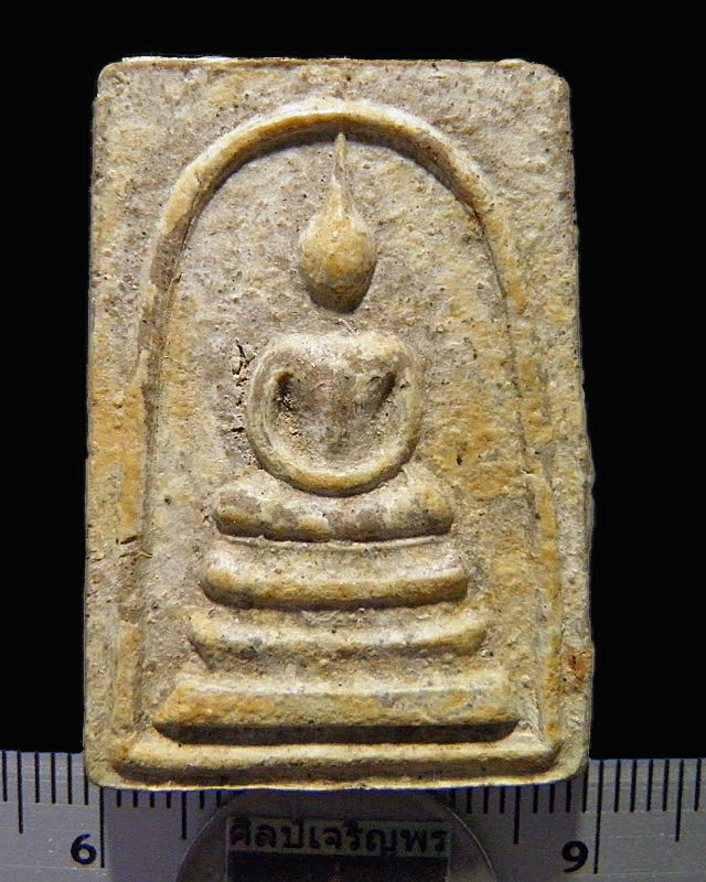 พระสมเด็จฐาน 3 ชั้น หลังยันต์ใบพัด ยุคแรก หลวงปู่ธูป วัดแคนางเลิ้ง เนื้อเนื้อผงปูน ฝังแร่ ปี 2517