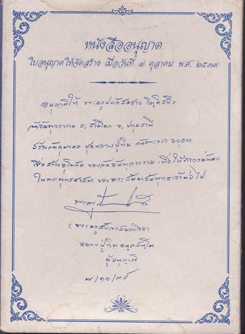 | รายละเอียด | ออกให้วัดอัมพุวราราม จ.ปทุมธานี เพื่อเป็นที่ระลึกในการสร้างโบสถ์ |