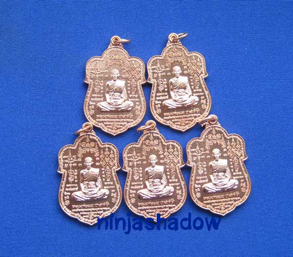 ** 5 เหรียญ **เหรียญเสมา หมื่นยันต์ ไตรมาสปี53 มงคลบารมี๘๙ หลวงพ่อรวย วัดตะโก เนื้อทองแดงผิวไฟ