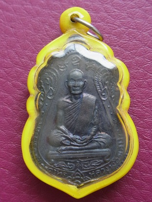 เหรียญหลวงพ่อขอม หลังพระพุทโคดม ทองแดงรมดำ เลี่ยมเก่า